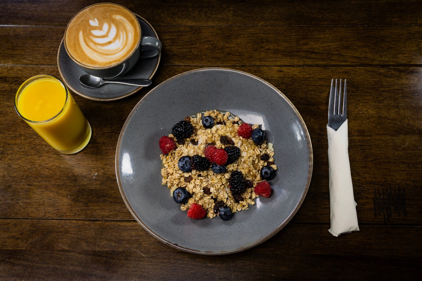 Full English Breakfast Full English Breakfast Vegan Platter The Vegan Platter Healthy Breakfast Healthy Breakfast French Toast French Toast Bangkok Benny Bangkok Benny Breakfast Burrito Breakfast Burrito Granola Granola Loaded Croissant Loaded Croissant Garden Breakfast Garden Breakfast The Benny's Eggs Royal Eggs Florentine Eggs Benedict Eggs Benedict Foragers All day Breakfast All Day Breakfast Omelette & Chips Jacket Potato Ham, Egg & Chips Fococcia Sandwich Scampi Scampi Chicken Burger Angus Burger Fish Pie New York Rueben Sandwich Avo & Prawn Salad C A B Salad (chicken, Avocado & Bacon)